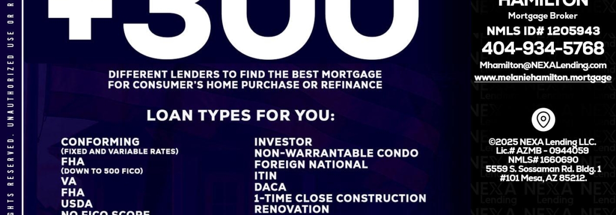 Hi, my name is Melanie Hamilton. I’m a Loan Officer with NEXA Lending LLC., offering personalized mortgage solutions, fast customized quotes, great rates and service with integrity.