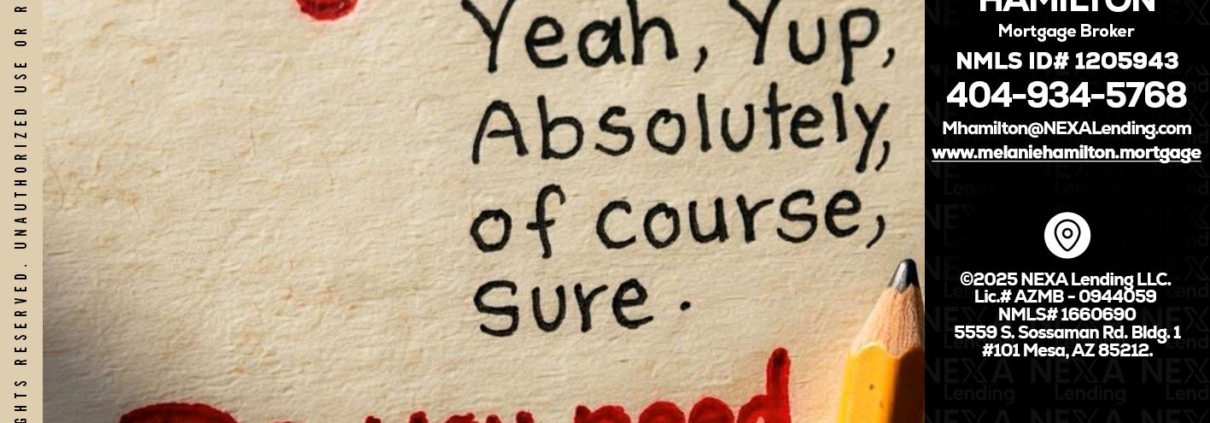 answer without - Melanie Hamilton -Loan OfficerHi, my name is Melanie Hamilton. I’m a Loan Officer with NEXA Lending LLC., offering personalized mortgage solutions, fast customized quotes, great rates and service with integrity.