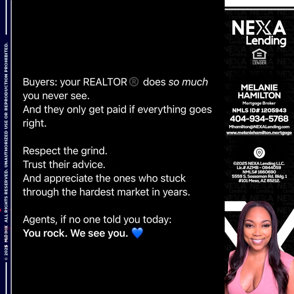 Hi, my name is Melanie Hamilton. I’m a Loan Officer with NEXA Mortgage LLC., offering personalized mortgage solutions, fast customized quotes, great rates and service with integrity.