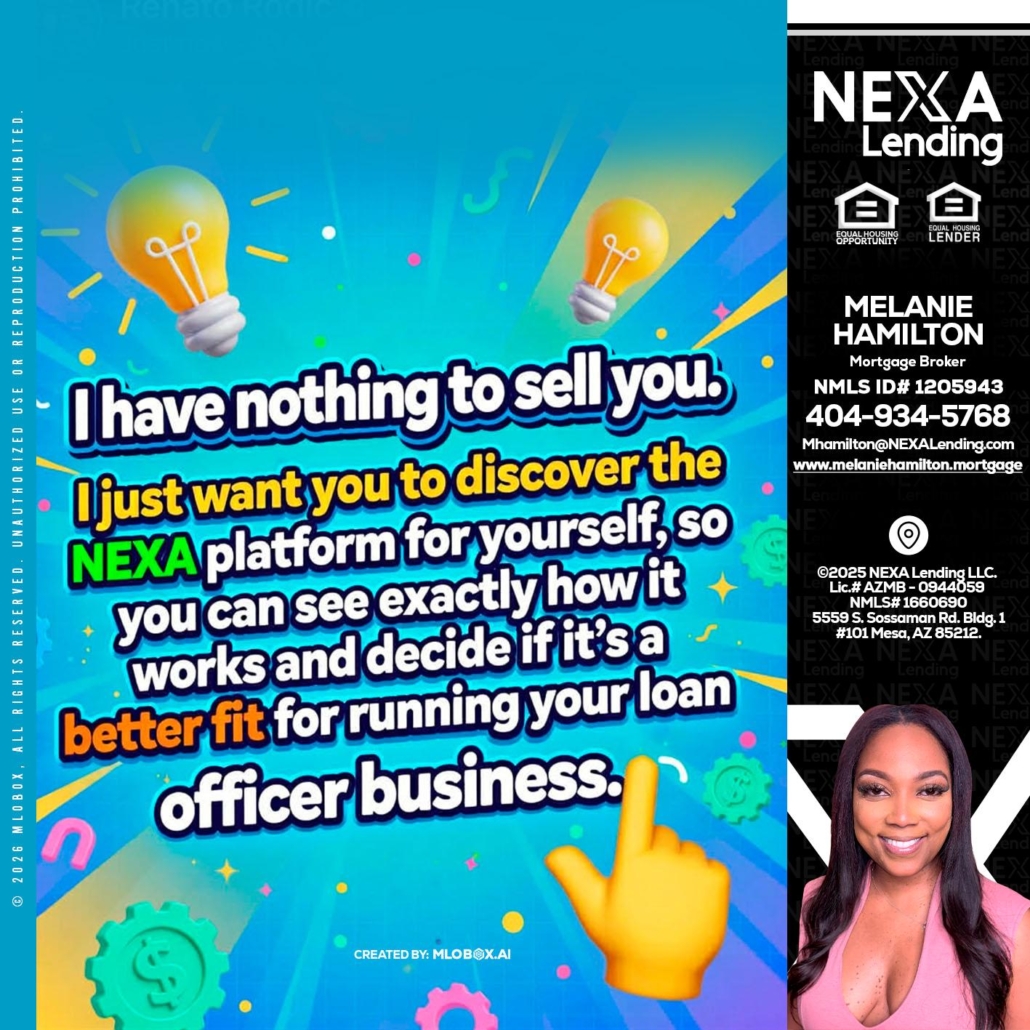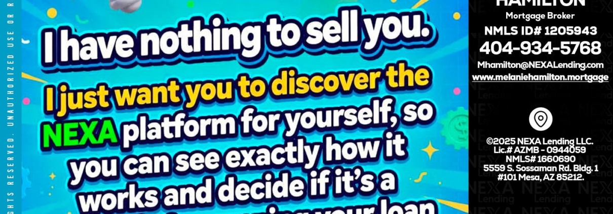 I HAVE NOTHING - Melanie Hamilton -Loan OfficerHi, my name is Melanie Hamilton. I’m a Loan Officer with NEXA Lending LLC., offering personalized mortgage solutions, fast customized quotes, great rates and service with integrity.