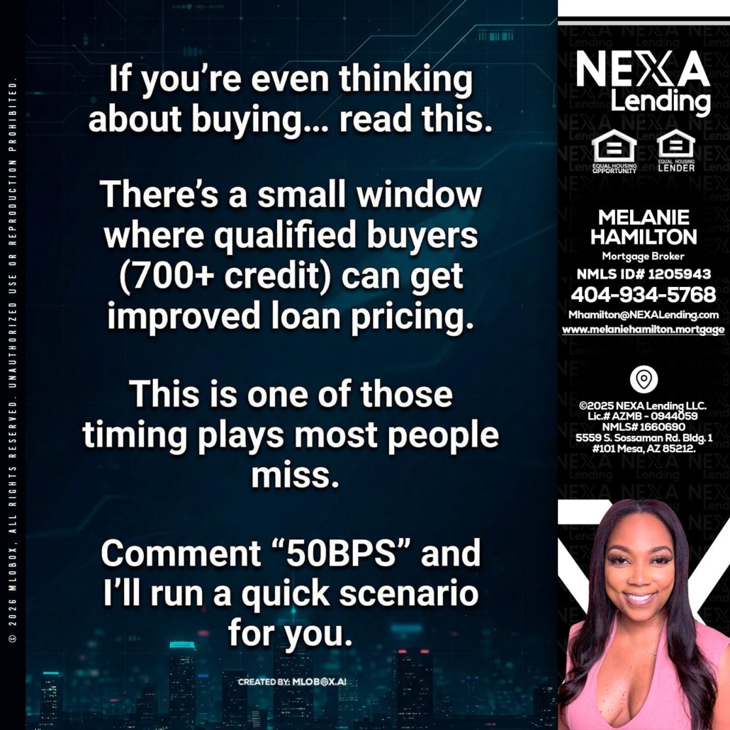 Hi, my name is Melanie Hamilton. I’m a Loan Officer with NEXA Lending LLC., offering personalized mortgage solutions, fast customized quotes, great rates and service with integrity.