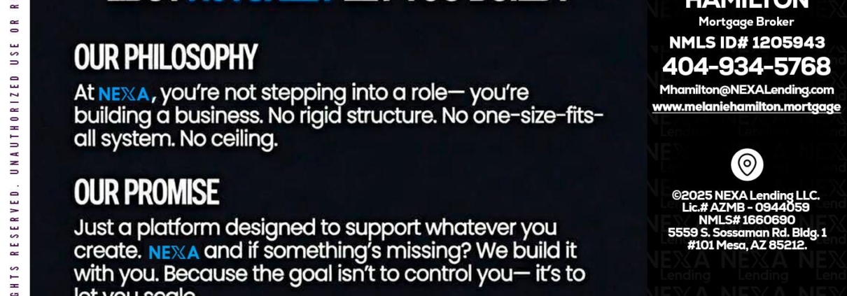 Hi, my name is Melanie Hamilton. I’m a Loan Officer with NEXA Lending LLC., offering personalized mortgage solutions, fast customized quotes, great rates and service with integrity.