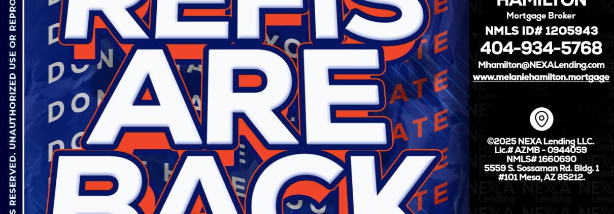 Hi, my name is Melanie Hamilton. I’m a Loan Officer with NEXA Mortgage LLC., offering personalized mortgage solutions, fast customized quotes, great rates and service with integrity.