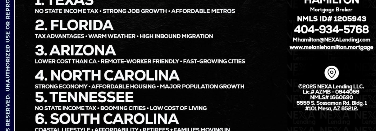 top 10 - Melanie Hamilton -Loan OfficerHi, my name is Melanie Hamilton. I’m a Loan Officer with NEXA Lending LLC., offering personalized mortgage solutions, fast customized quotes, great rates and service with integrity.