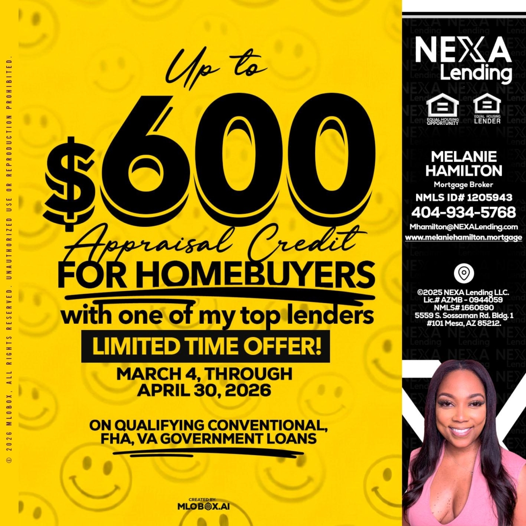 UP TO 600 - Melanie Hamilton -Loan OfficerHi, my name is Melanie Hamilton. I’m a Loan Officer with NEXA Lending LLC., offering personalized mortgage solutions, fast customized quotes, great rates and service with integrity.